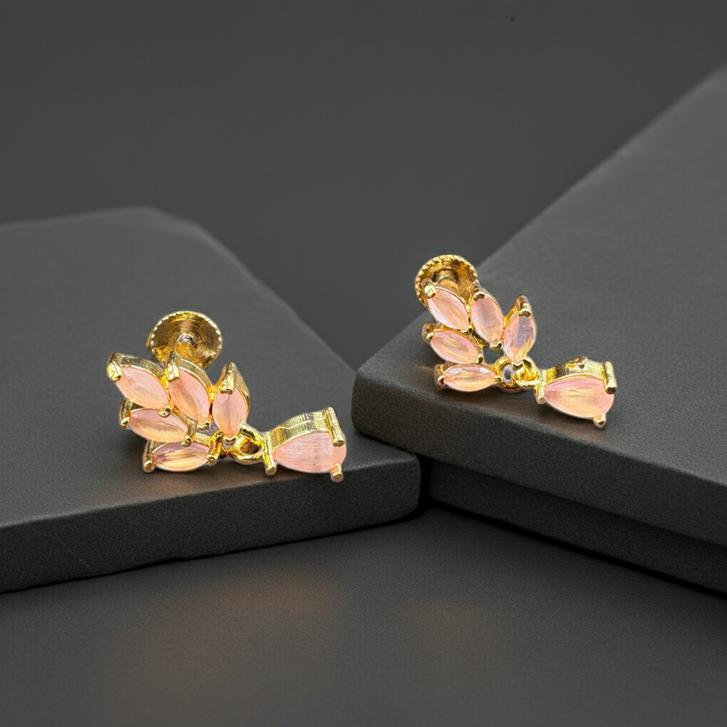 Add a touch of soft elegance to your everyday or festive look with these beautifully crafted gold-plated AD earrings. Designed with a cluster of marquise-cut pink stones and a delicate dangling teardrop gem, this pair brings together sophistication and subtle sparkle.