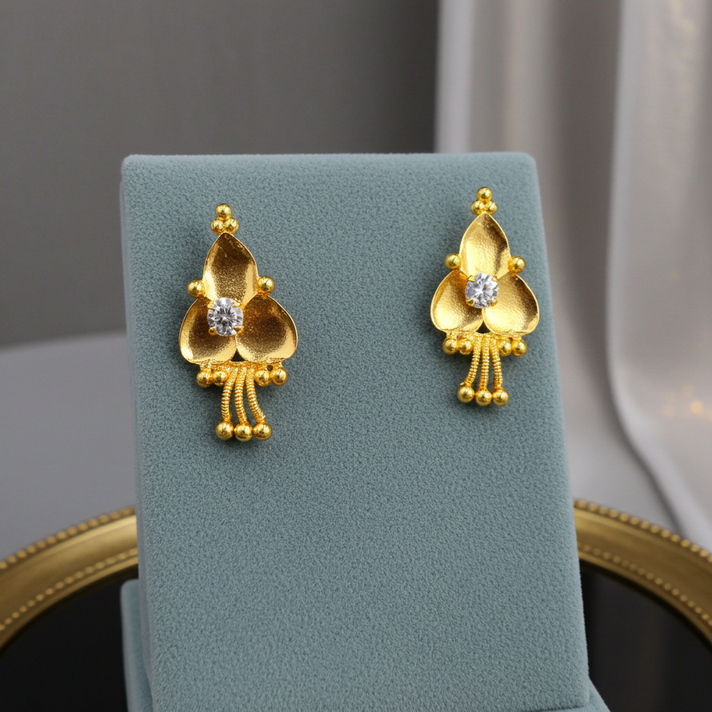 Gold-Plated AD Stud Earrings – Elegant Floral Design