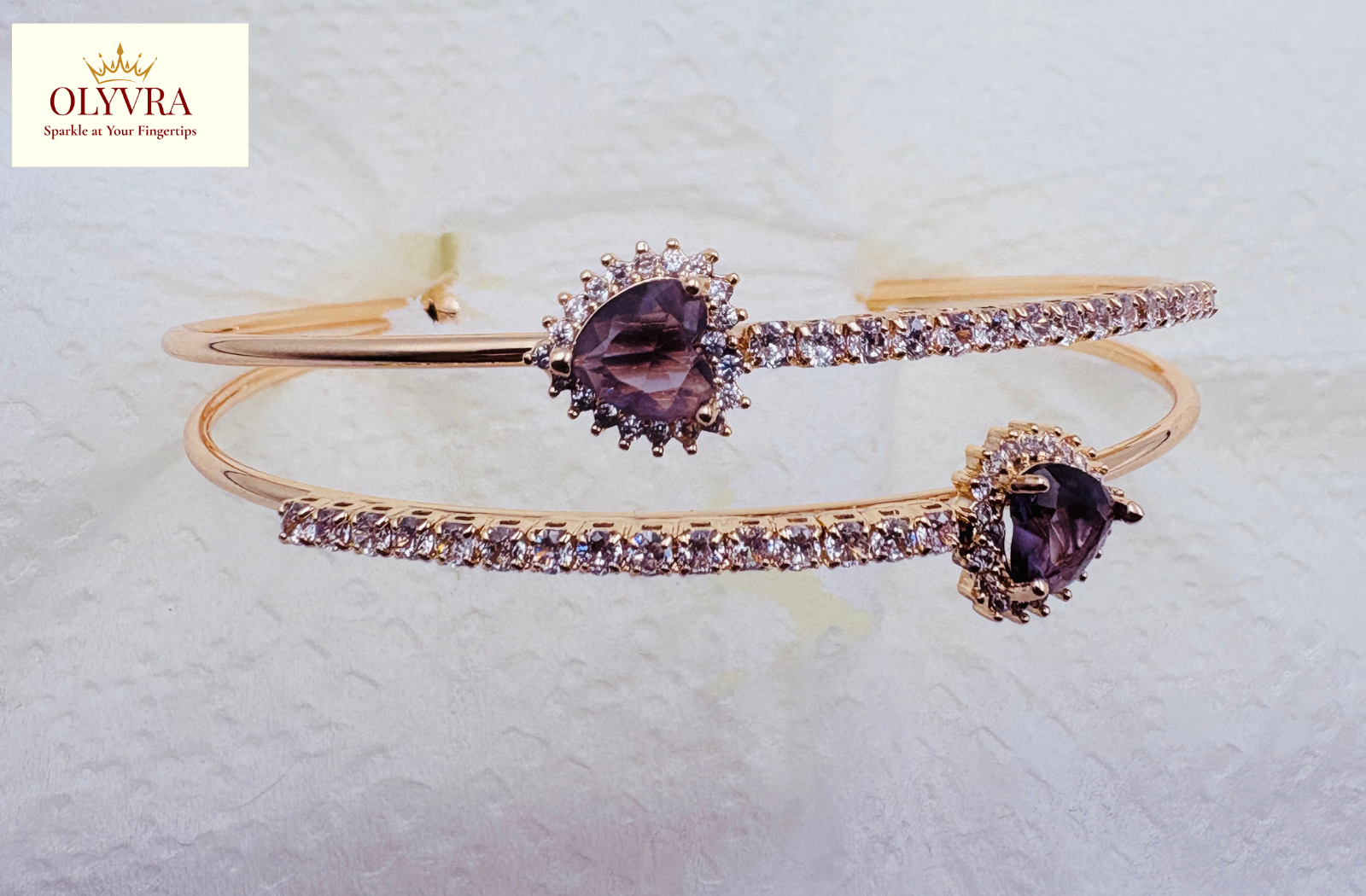 Rose Gold-plated deep purple stones open bangle |Olyvra